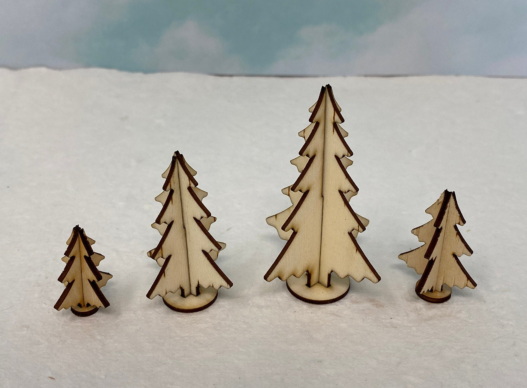 Mini Village Tree Set - add some trees to your mini village. The kit includes 4 trees in 4 sizes. It can be printed in a variety of Scales. Trees are super easy to assemble and enhance your village or table top.