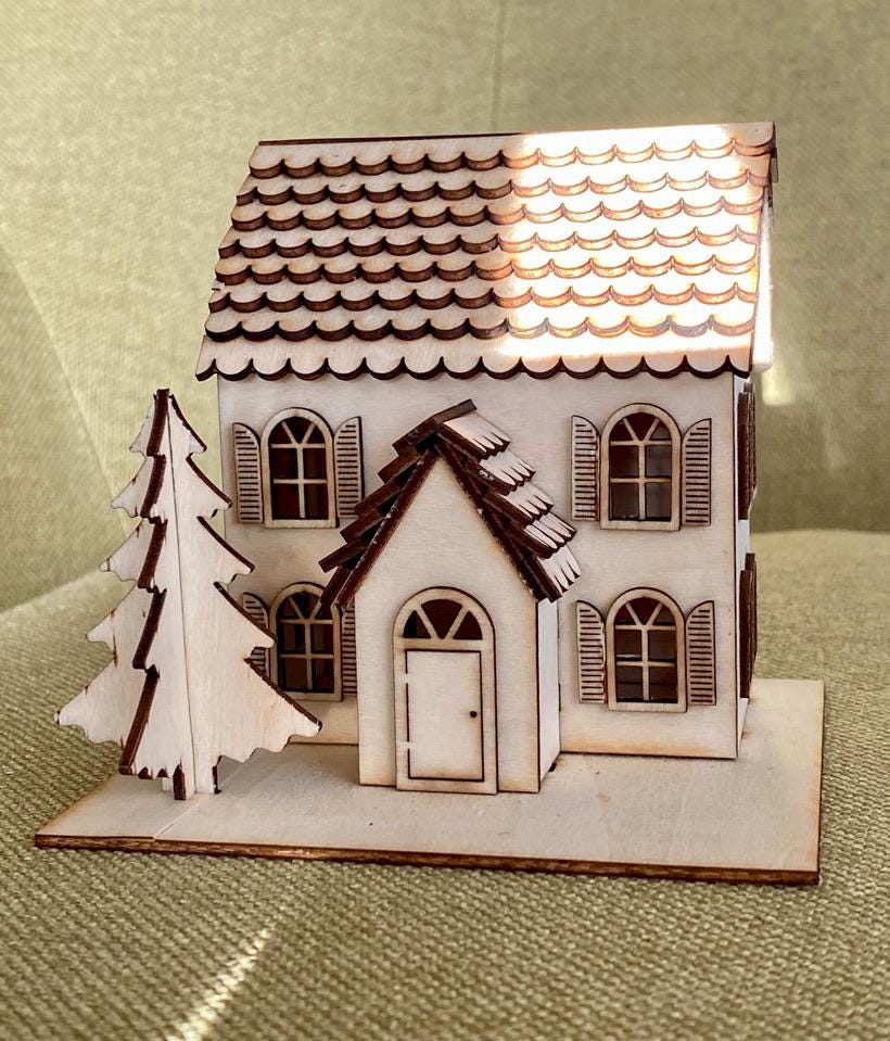 This House Ornament can hang from your Christmas tree or sit on the table. It is made of basswood and can be left as plain wood or painted for you own unique ornament.